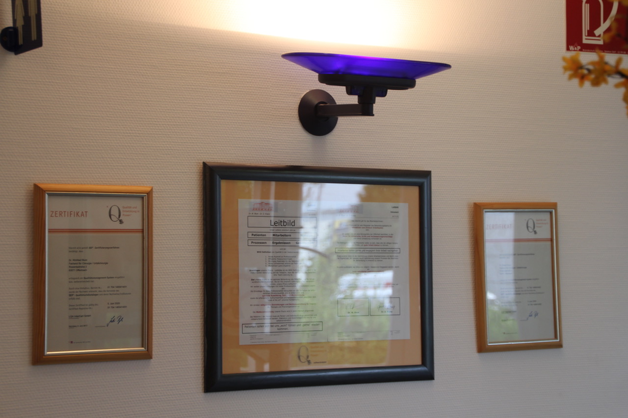 Unsere im August 2003 bezogenen Praxisräume im Ärztezentrum Rowentastraße 2 (vormals Waldstraße 228) befinden sich im Erdgeschoss. Die Praxis ist ebenerdig ohne Stufen zu erreichen. Es stehen ausreichend kostenlose Parkplätze zur Verfügung. Verletztentransporte können unmittelbar bis an die Praxis heranfahren. Auf ca. 360 qm sind – nach den aktuellen Richtlinien des Infektionsschutzgesetzes (RKI-Richtlinien) sowie den Richtlinien der Berufsgenossenschaften – ein zertifizierter Praxisbereich und ein ebenfalls zertifizierter Operationstrakt untergebracht.